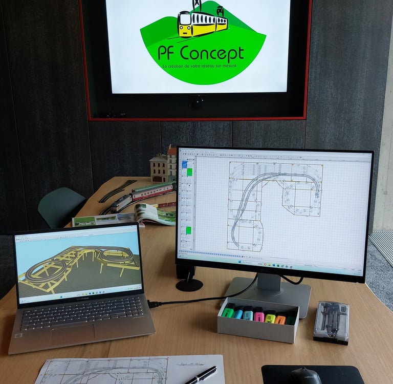 Avant de commencer à construire votre projet, nous planifions exactement votre réseau ou circuit à l’aide de logiciels informatiques spécialisés. Cela inclus le tracé des voies et des éléments paysagés, mais également la définition et la nomenclature de l’ensemble des éléments de menuiserie ainsi que le tracé de l’ensemble des circuits électriques.